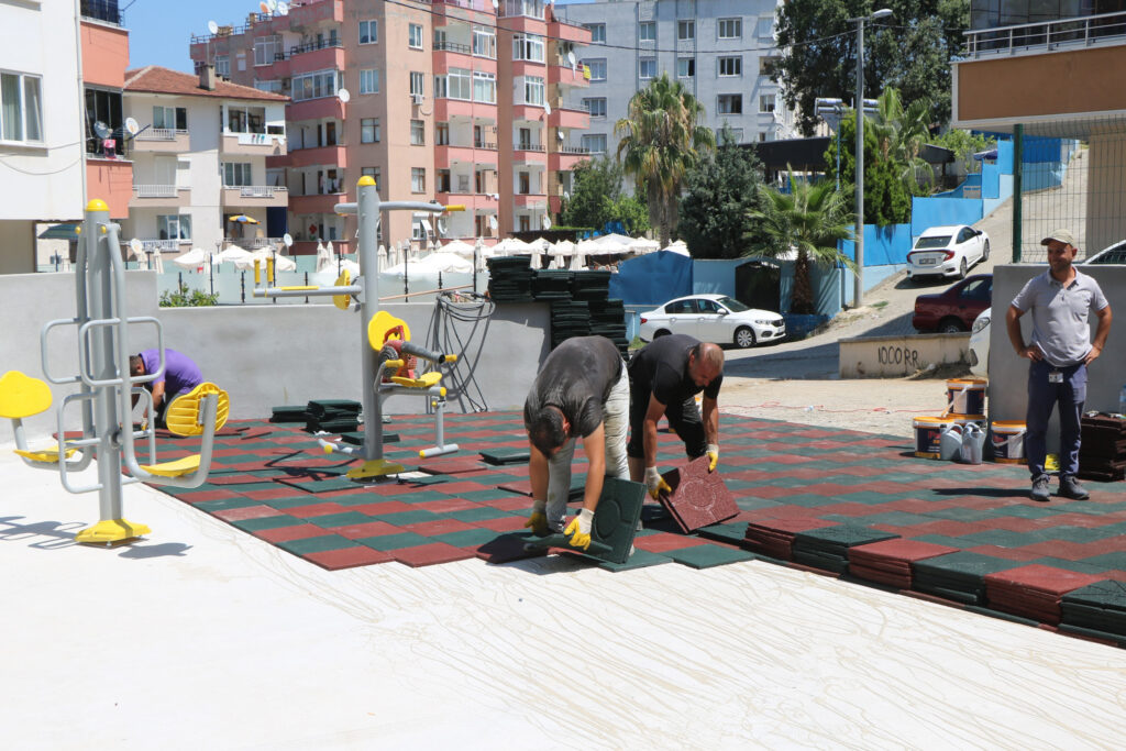 Çınarcık Belediyesi ekipleri yeni çocuk parkının oyun gruplarının ve spor aletlerinin montajının ardından park zeminine , minik dostlarımızın güvenliği için kauçuk zemin döşeniyor. Peyzaj düzenlenmesi ve oturma gruplarının ardından Ergüven 1 Sokak’taki   çocuklar parklarına kavuşmuş olacaklar.