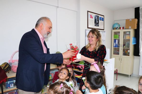 Çiftlikköy Belediye Başkanı Ali Murat Silpagar, 24 Kasım Öğretmenler Günü’nde Çiftlikköy Şehit Ömer Halisdemir Ortaokulu ve Ragıp Naile Saraç Anaokulu’nu ziyaret ederek öğretmenlere hediyelerini bizzat takdim etti.